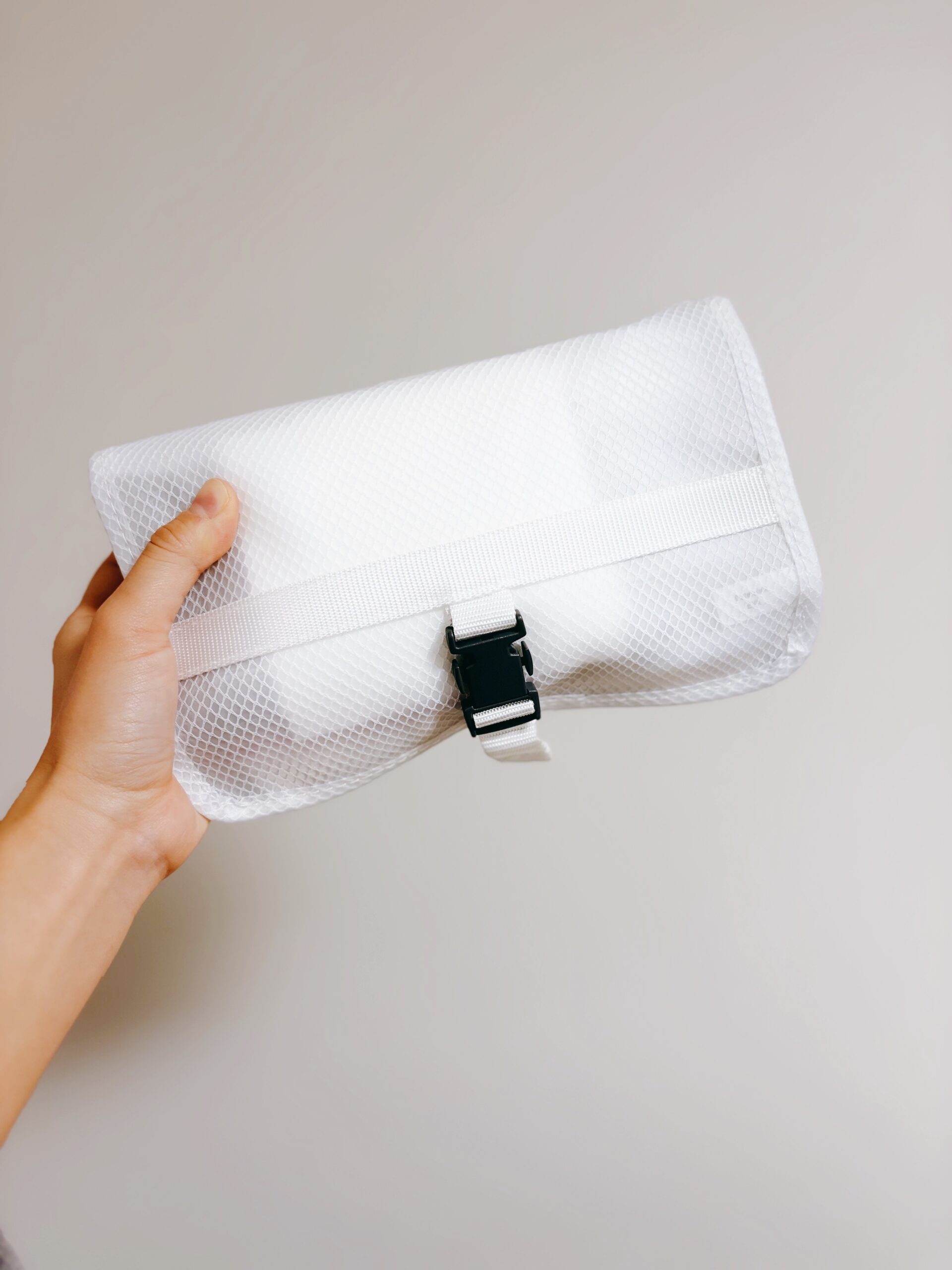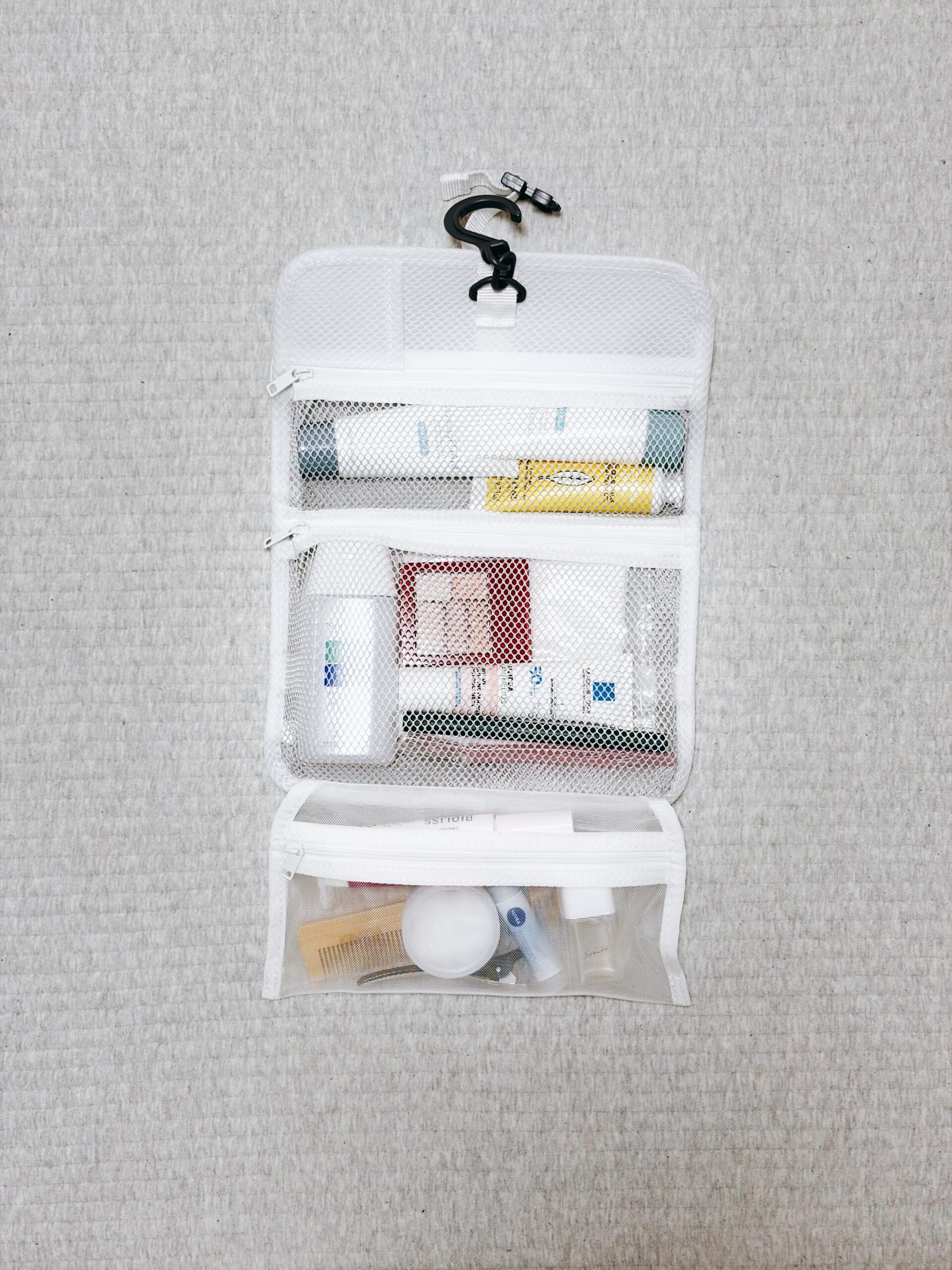 旅の美容グッズは、無印良品のEVA吊るせるケースに詰めます。(→EVA吊るせるケースについての記事はこちら)