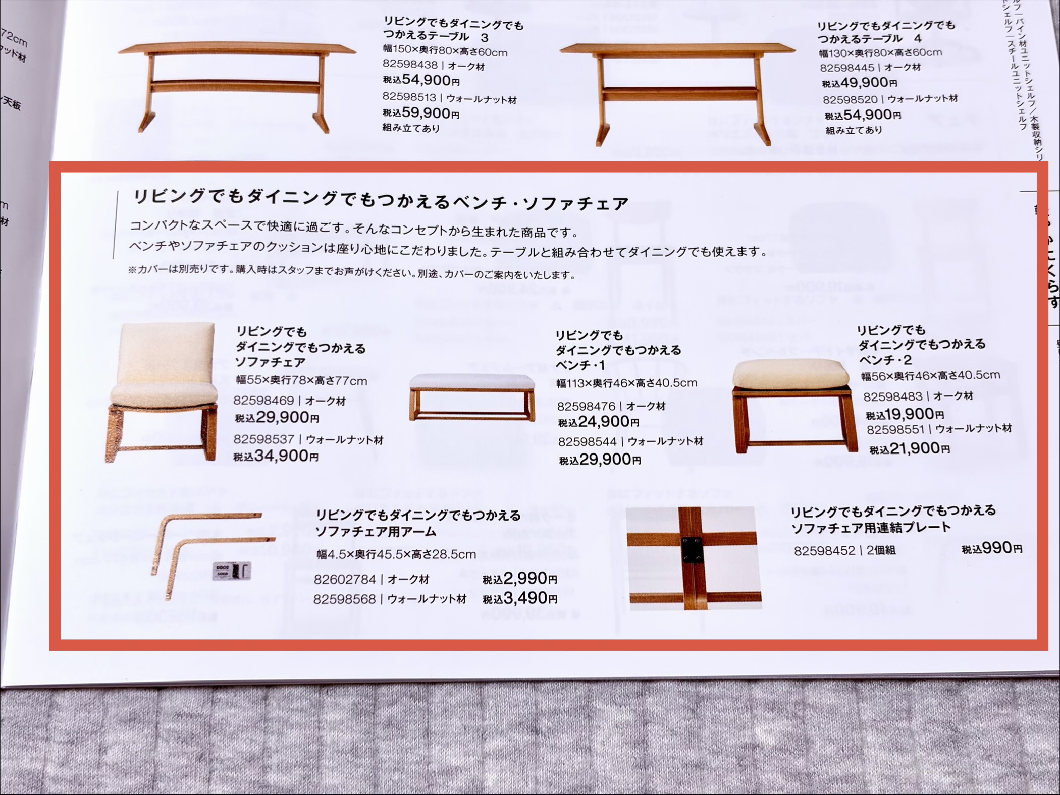 「リビングでもダイニングでもつかえる」シリーズは、まさに私が求めているような、リラックスもできるし食事や作業もできるようなもの。