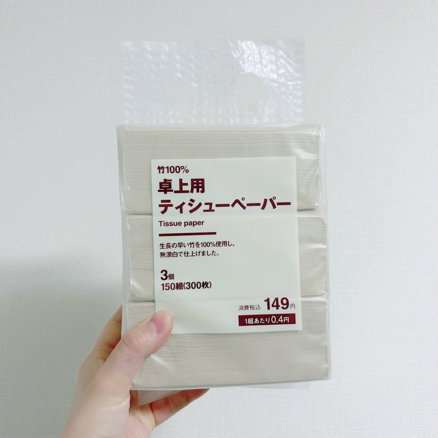 これまではマツキヨのティッシュを愛用していましたが、無印のティッシュもリーズナブルなので試してみることにしました。