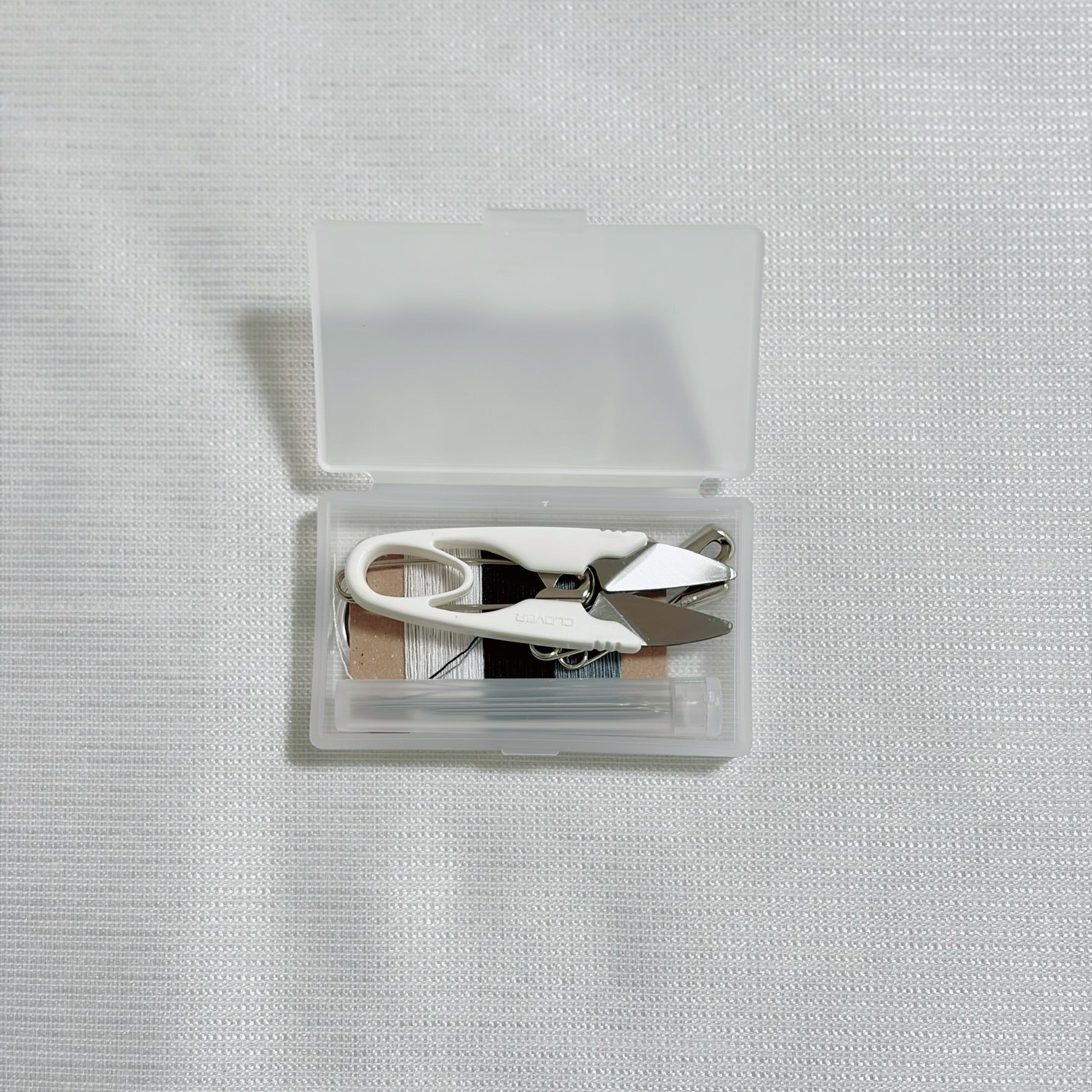 無印良品の携帯用ソーイングセット、必要最低限のものだけが入っているので、とてもコンパクト。