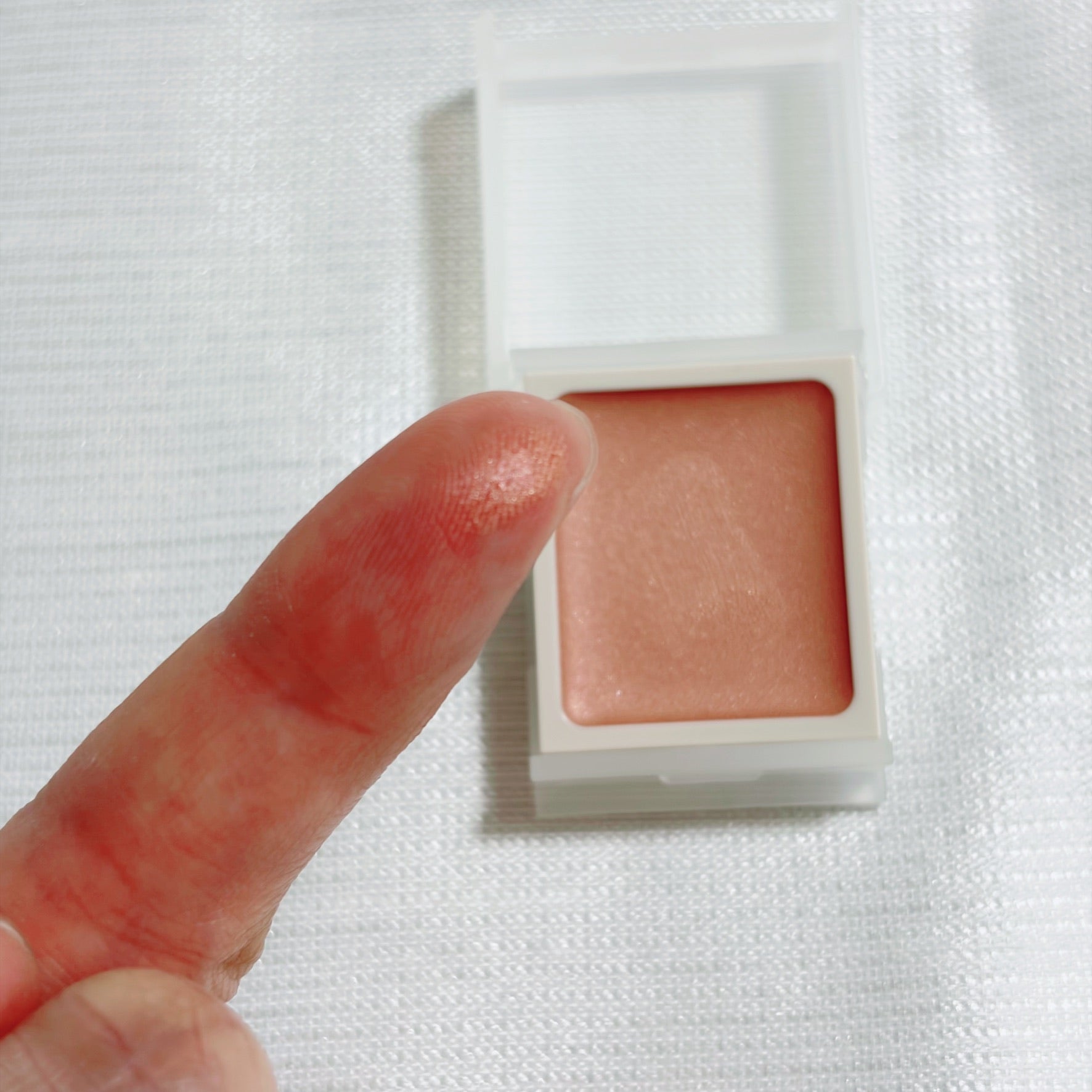 目の上に塗ってみると↓のように、ほんのり色がつきました。
